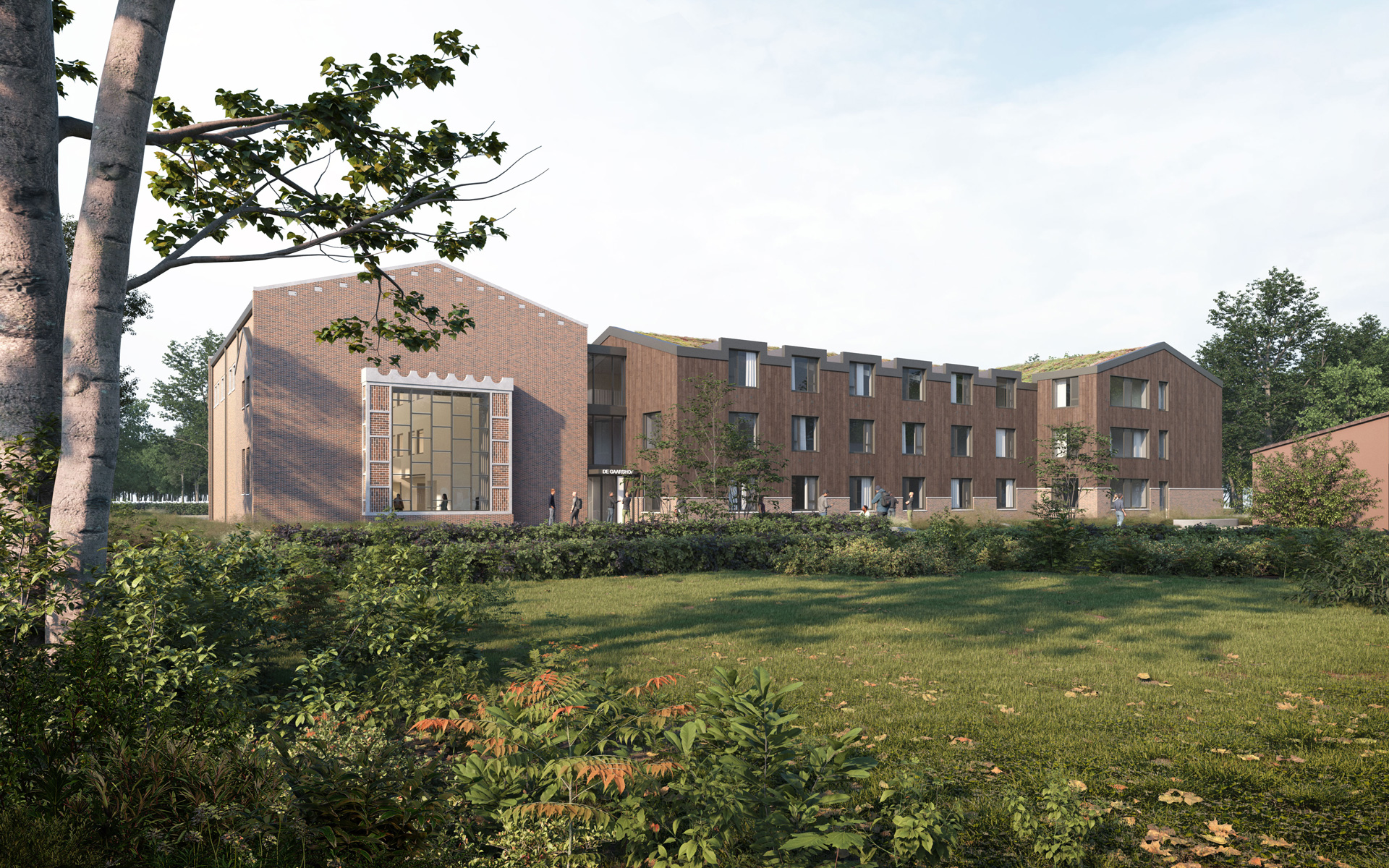 The old chapel was on the verge of demolition, but our design has given it a central role. It will become a place for gathering, meeting and building community. Inside, there will be a kitchen, restaurant and activity area, brought together in one new, large architectural element. Transformation instead of demolition is also a sustainable solution that reduces construction and environmental costs. What’s more, it allows us to preserve part of the site’s historical identity.
