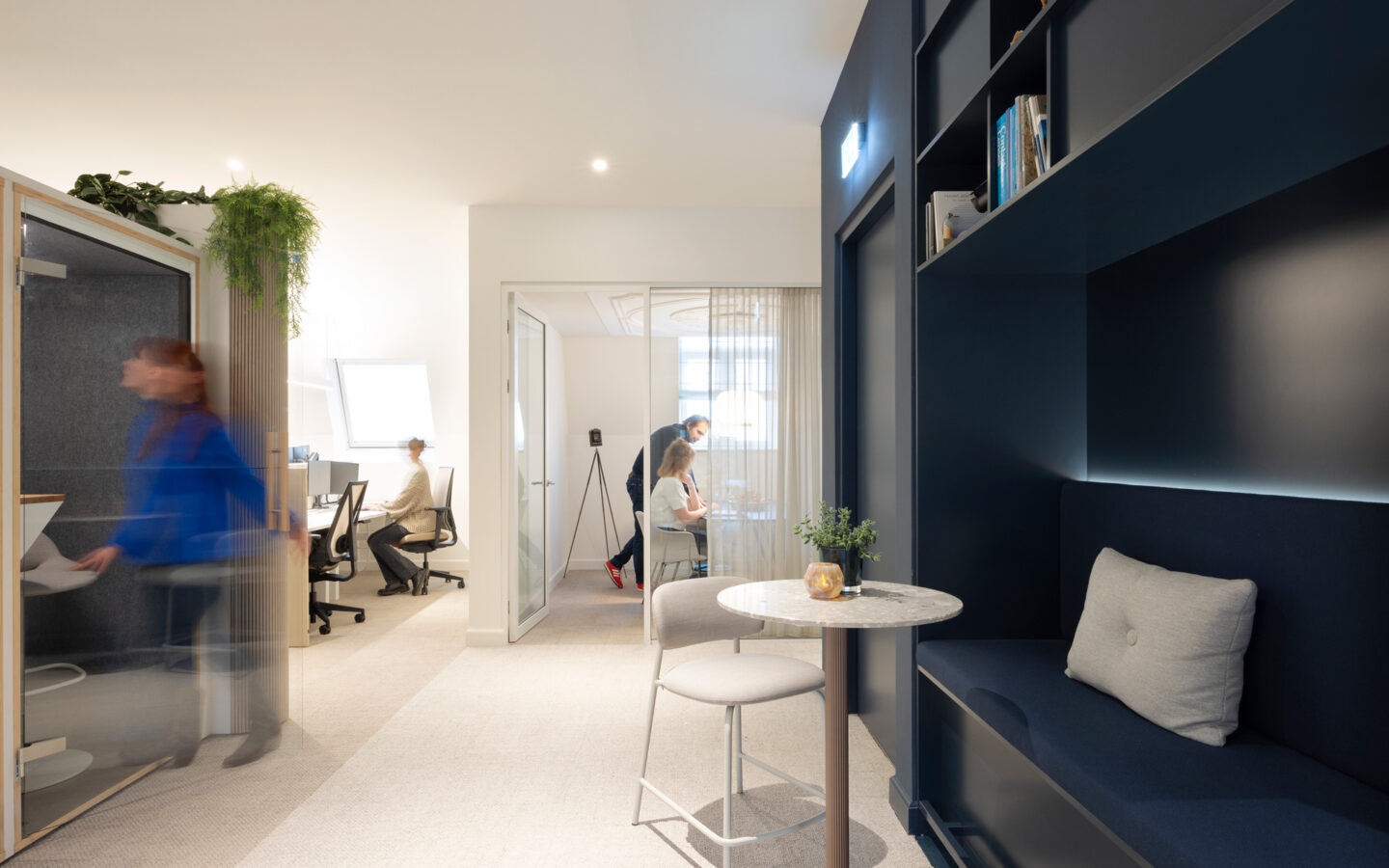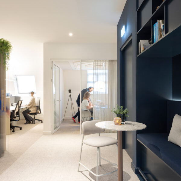 In het voorhuis domineren hout en de oorspronkelijke details. In de ontmoetingszone en de academie is het interieur strakker, met gietvloeren, glazen wanden en veel groen. Het Huis van Visser is klaar voor de toekomst!