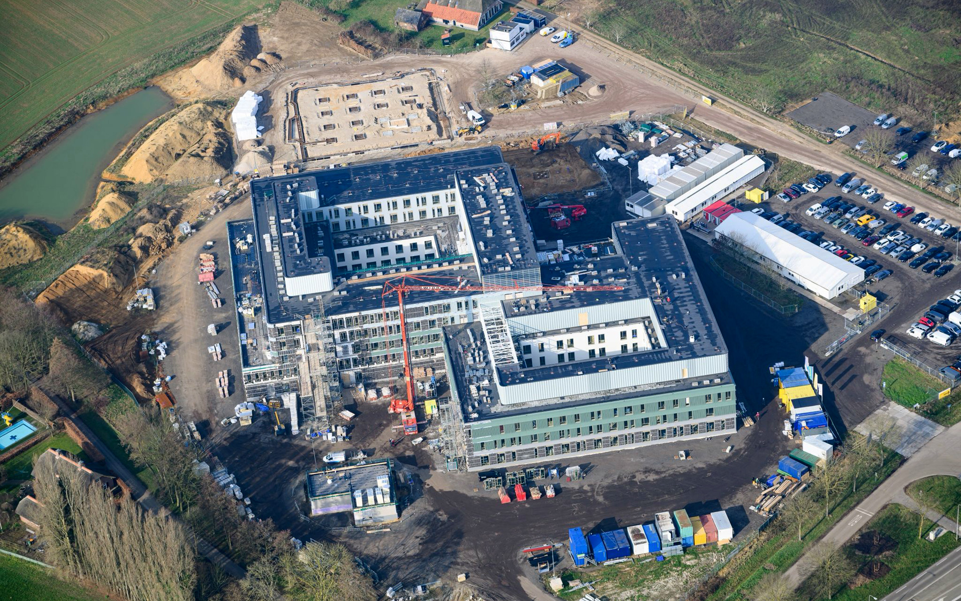 Het ziekenhuis zelf kent twee bouwvolumes. Eén volume met hoog-complexe functies, zoals de hotfloor en een ander deel met daarin onder meer alle kantoorruimten, de poliklinieken en alle verpleegafdelingen. De ambulances en goederen komen op maaiveldniveau binnen. Op dit niveau bevindt zich ook de ‘acute as’ voor spoedeisende zorg en ingrepen. Vanuit de tegenoverliggende parkeergarage lopen patiënten en bezoekers via een brede brug het hart van het ziekenhuis binnen op de eerste verdieping, waar de poliklinieken zich bevinden. Kortom, de verschillende mensen- en goederenstromen worden heel bewust van elkaar gescheiden.